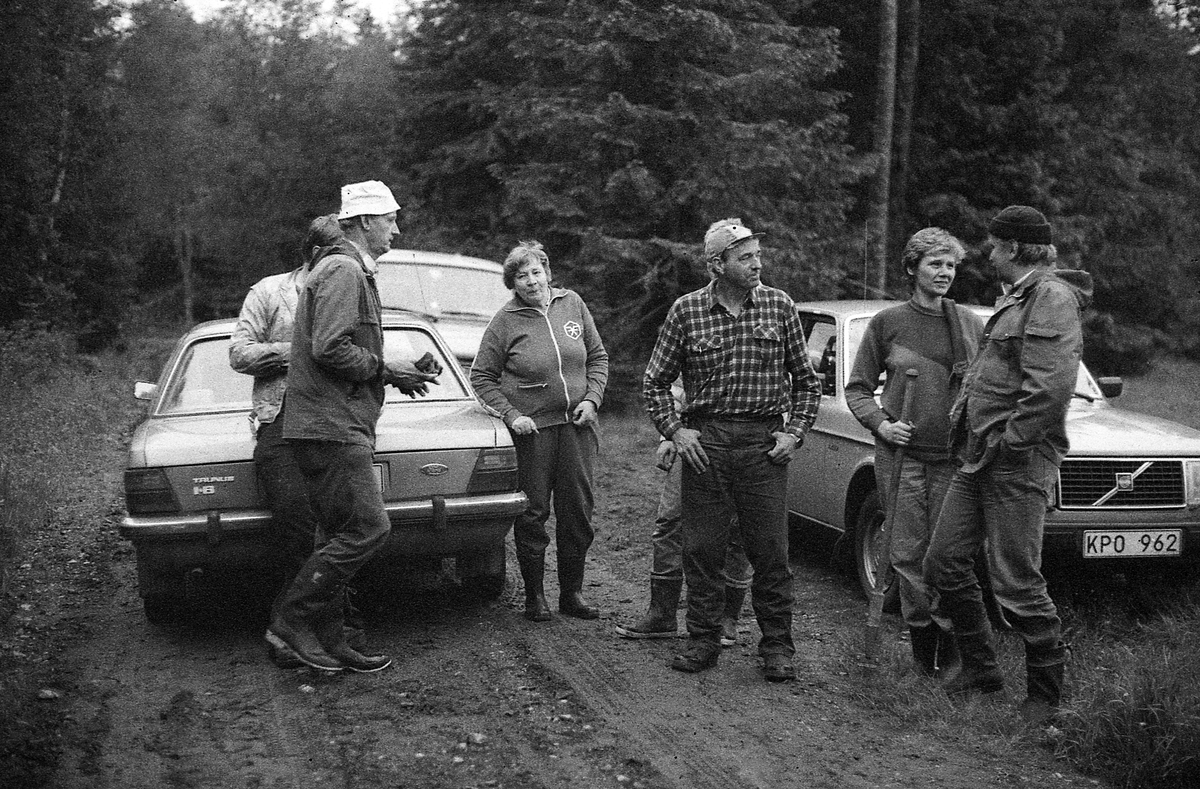 Vargön, Hunneberg. Kolmilan på Erdalen. Arbetslag samlat vid sina bilar.