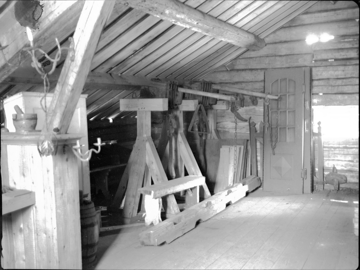 Västra Tunhem. Gamla föremål från kyrkan samlade i ett magasin i prästgården.
