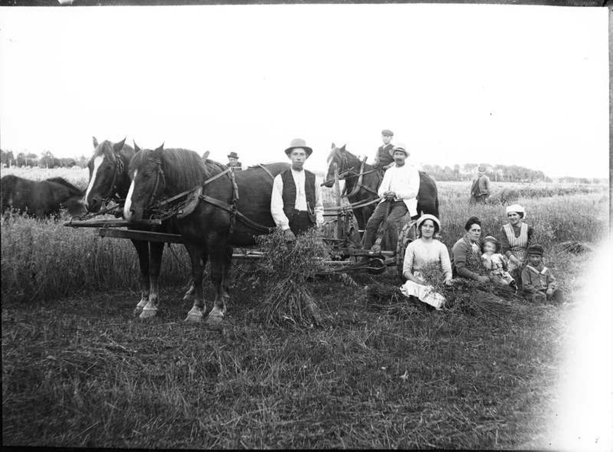 Tio personer sysselsatta med skördearbete.
