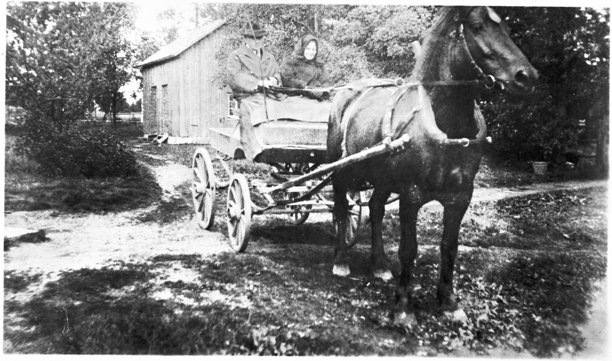 Sara Eriksson och sonen Anders hemkomst från kyrkan. Gestad