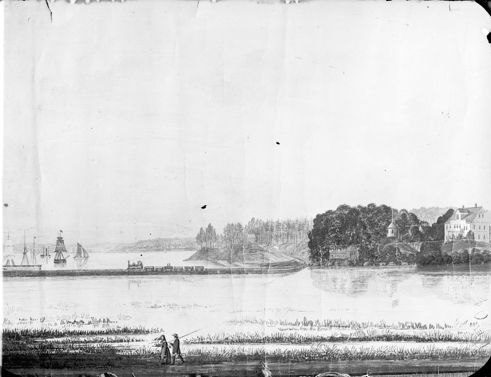 Utsikt mot Kasen efter en gammal målning i Vänersborgs museum.