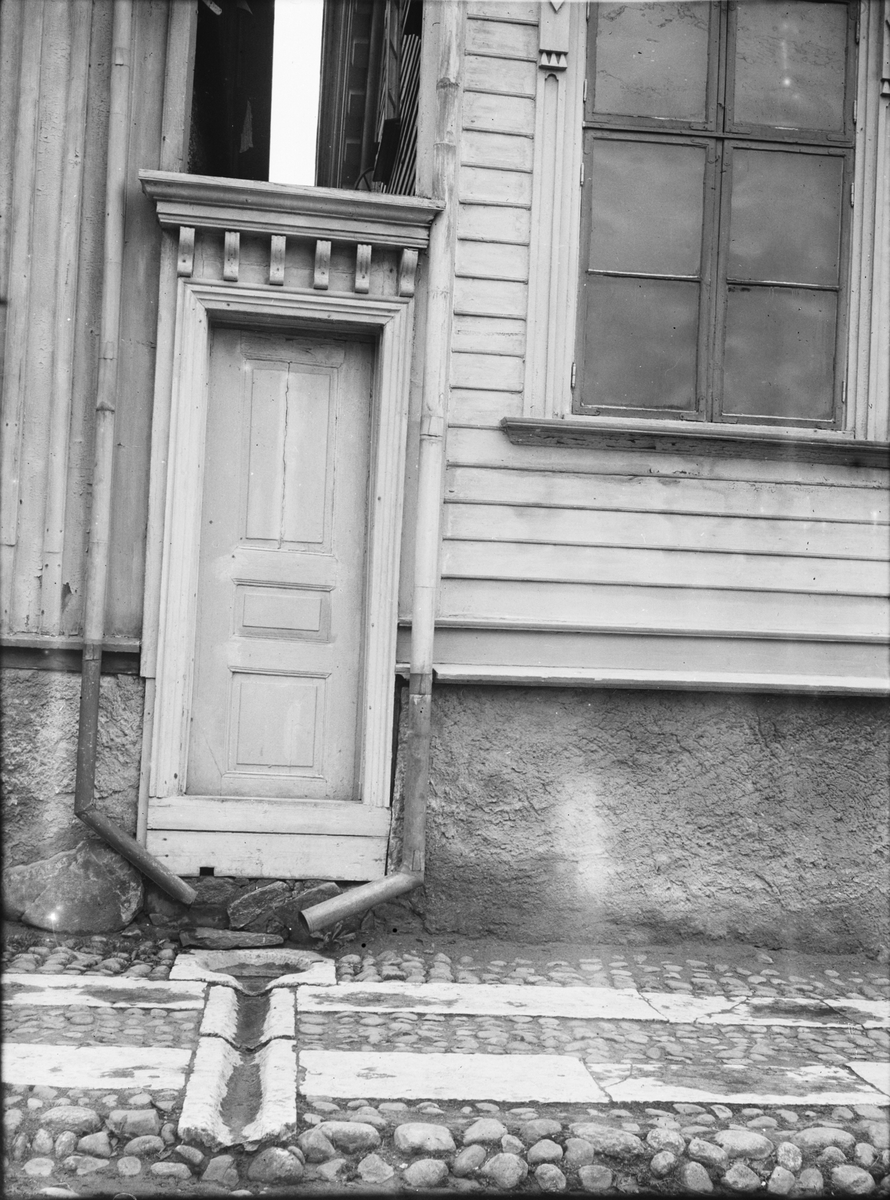 Portal till hörnhuset mellan Residens- och Nygatorna igensatt i en husvret. Vänersborg