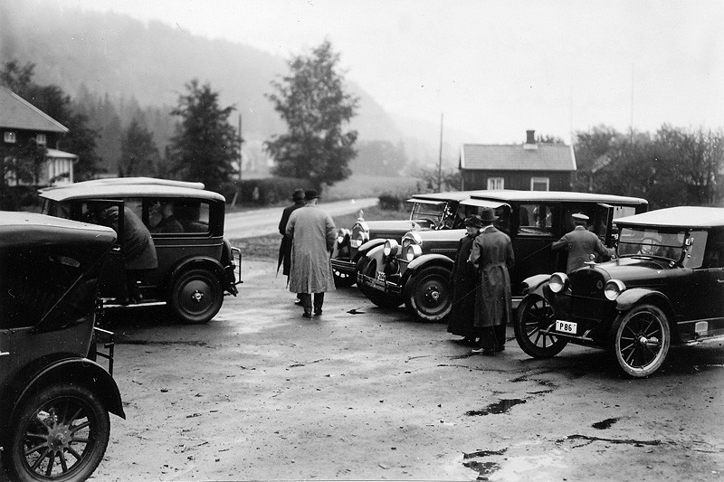 Titel: Västergötlands Fornlämmninges förn årsmöte i Vänersborg 20/6 1927, Rundresa Västra Tunhem. Vid Västra Tunhems kyrka.