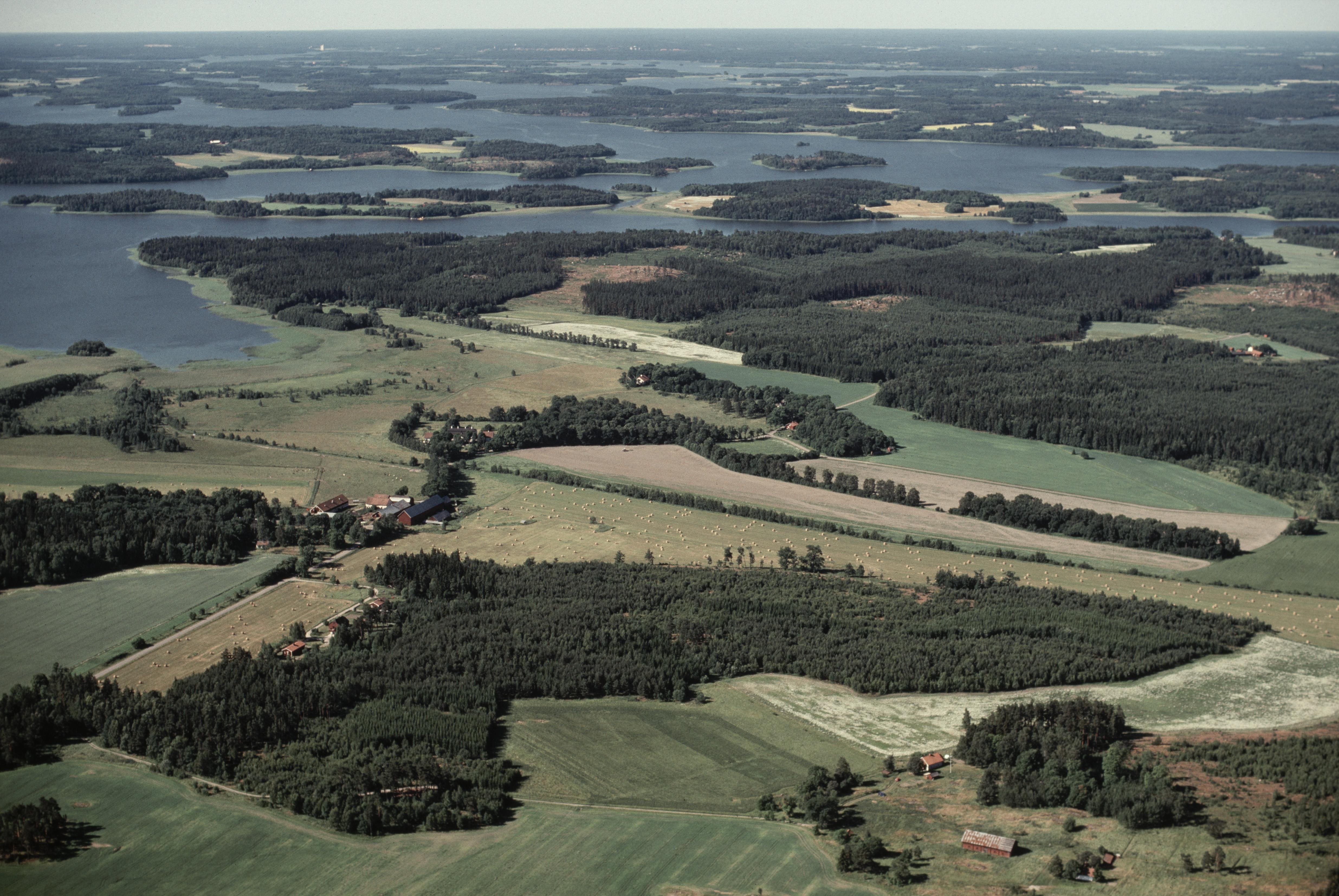 I bildens övre del norra delen av sjön Ekaviken. Eka herrgård vid bildens mitt. Till höger Vallby socken. Bilden är tagen mot (väderstreck): SV
