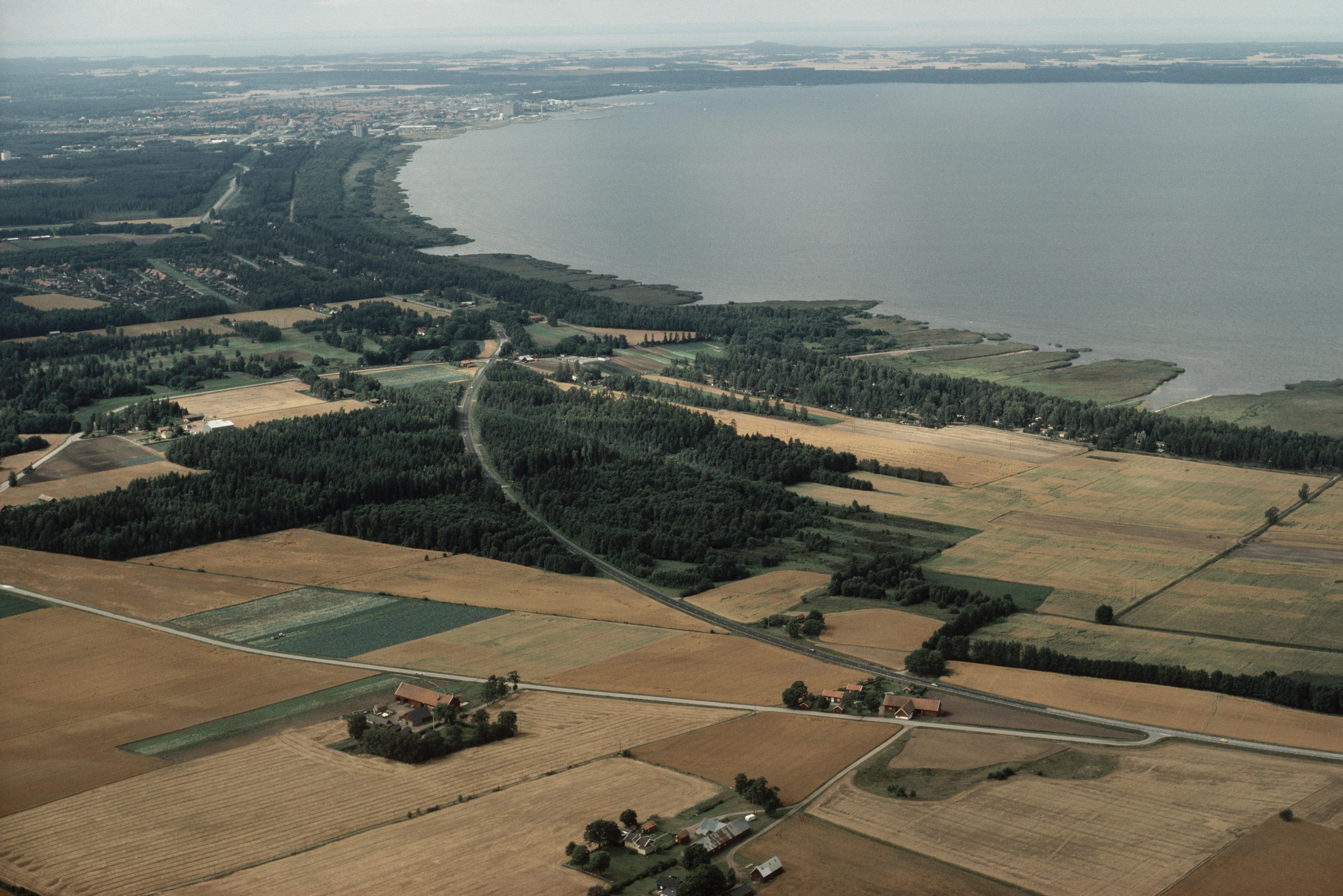 Backgården och Tyskagården m.fl. Lägenhetsbebyggelse RAÄnr Skeby 28:1 till höger. I bildens övre del Lidköpings stad vid Kinneviken. Bilden är tagen mot (väderstreck): V
