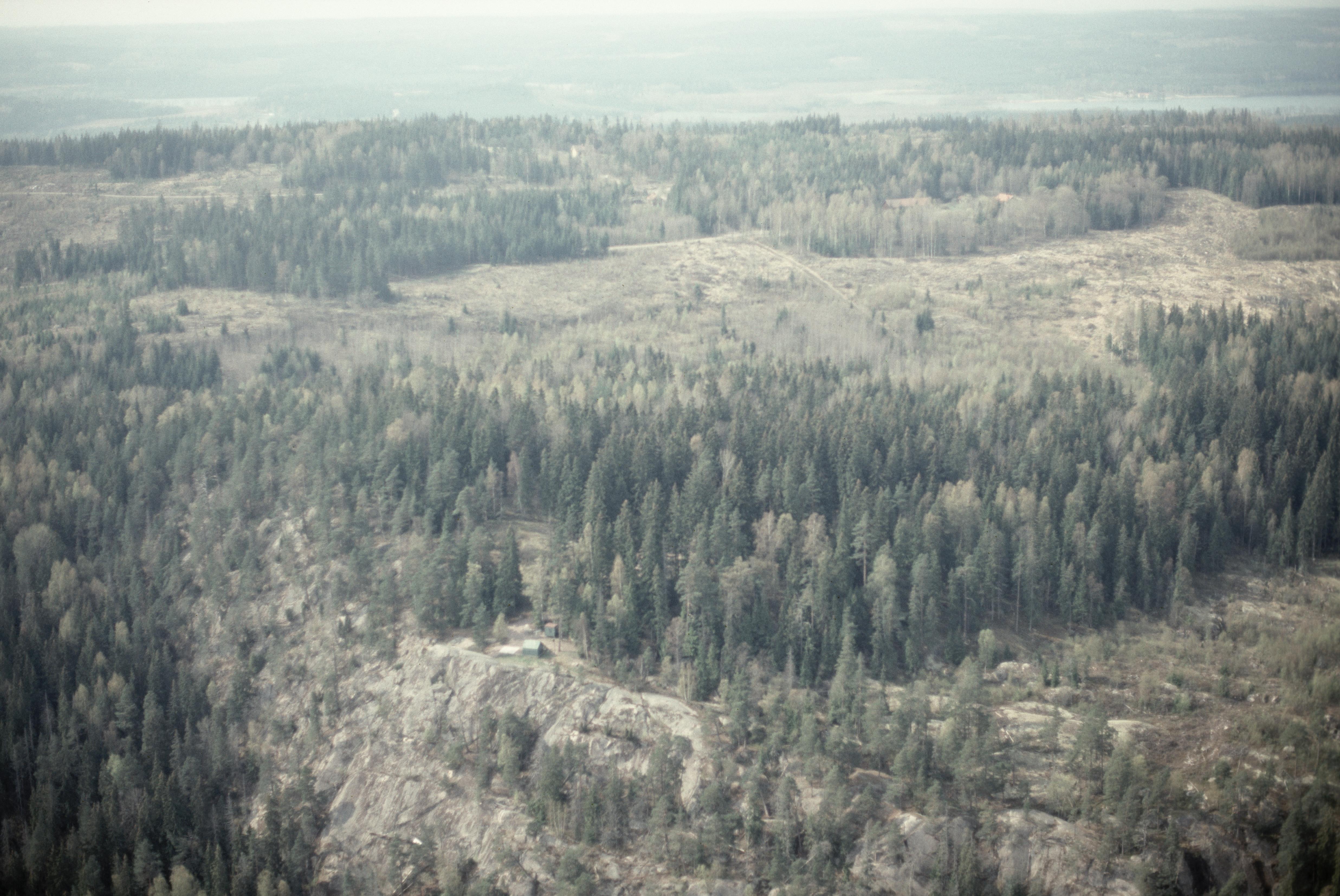 Bergsbefästning / milität änläggning RAÄnr Undenäs 164:1 vid bildens mitt. I bildens övre del Mölltorps socken. Bilden är tagen mot (väderstreck): VNV