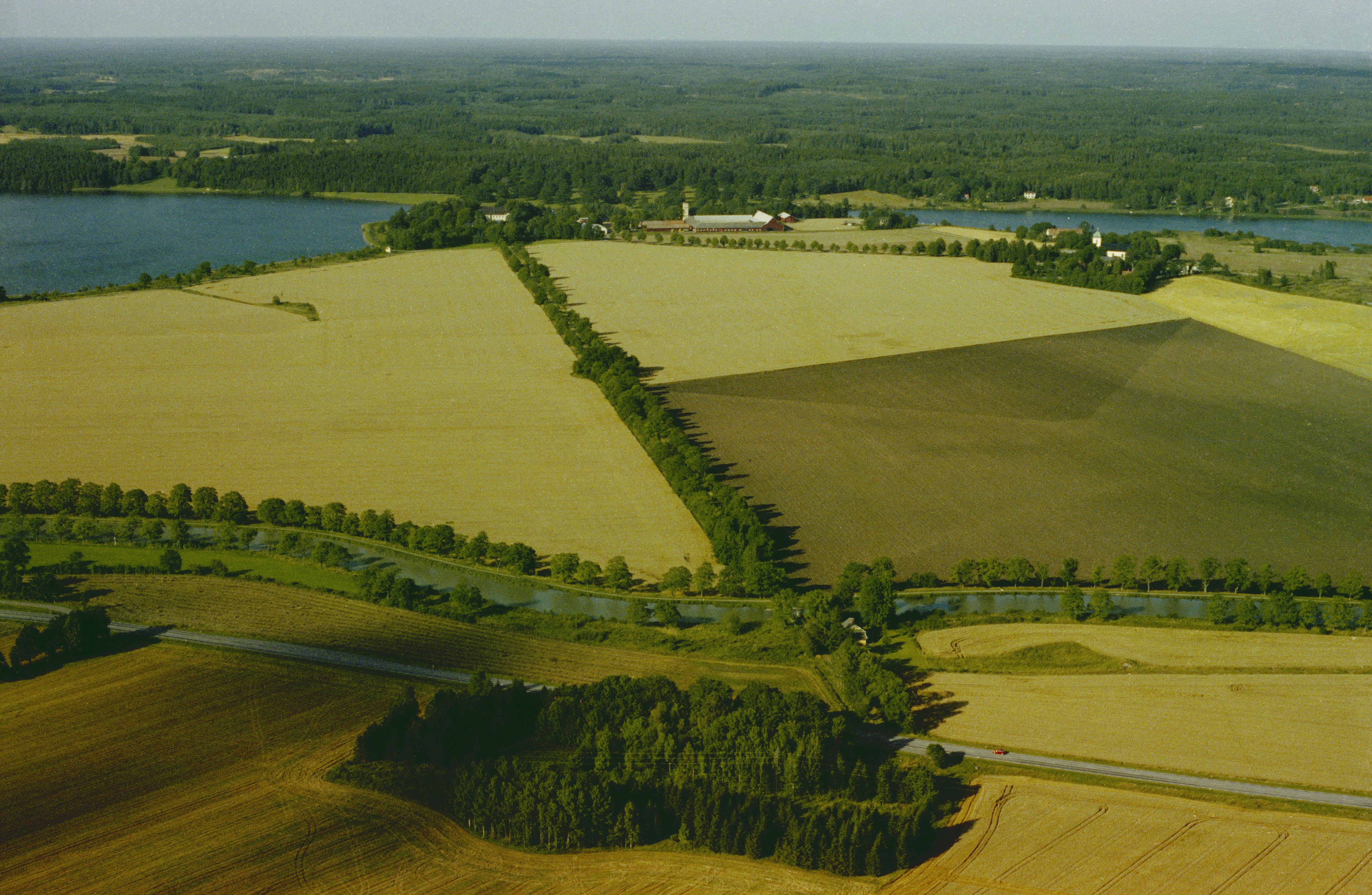 I bildens nedre del Göta kanal. I bildens övre del Ljungs slott och Ljungs kyrka. Bilden är tagen mot (väderstreck): NNO
