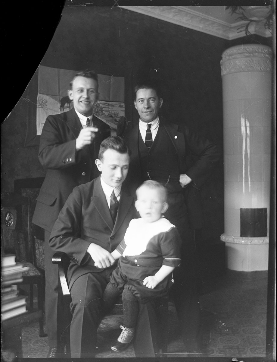 Plantagegatan 6. J pojkarnas rum hos Fritzells. Anders, Nils (stående) och Artur (sittande), samt Erik Gustaf (sittande i Arturs knä).