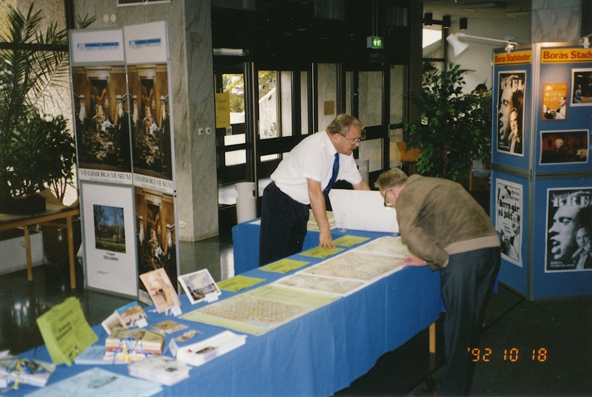 Länsmuseets monter och försäljning på Borås länsbibliotek vid lokalhistoriska dagar.
