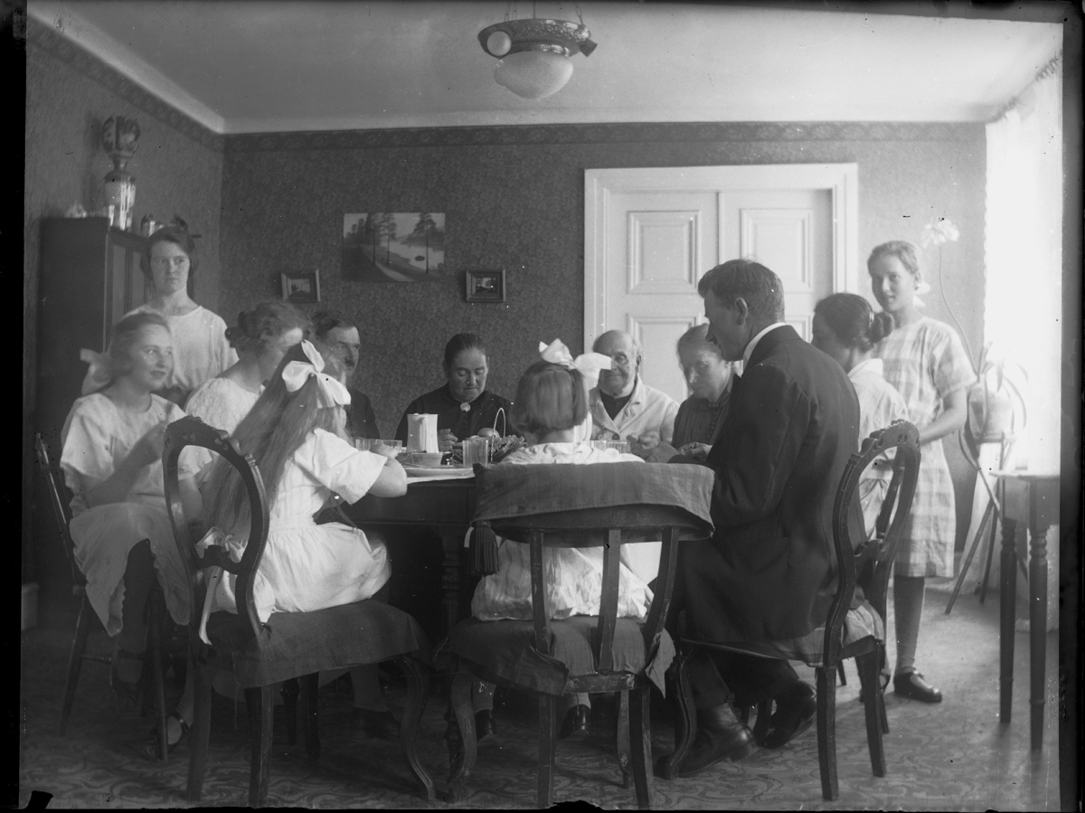 Kring kaffebordet i Säfflehuset med Morbröderna, morfar och moster Hildegard.