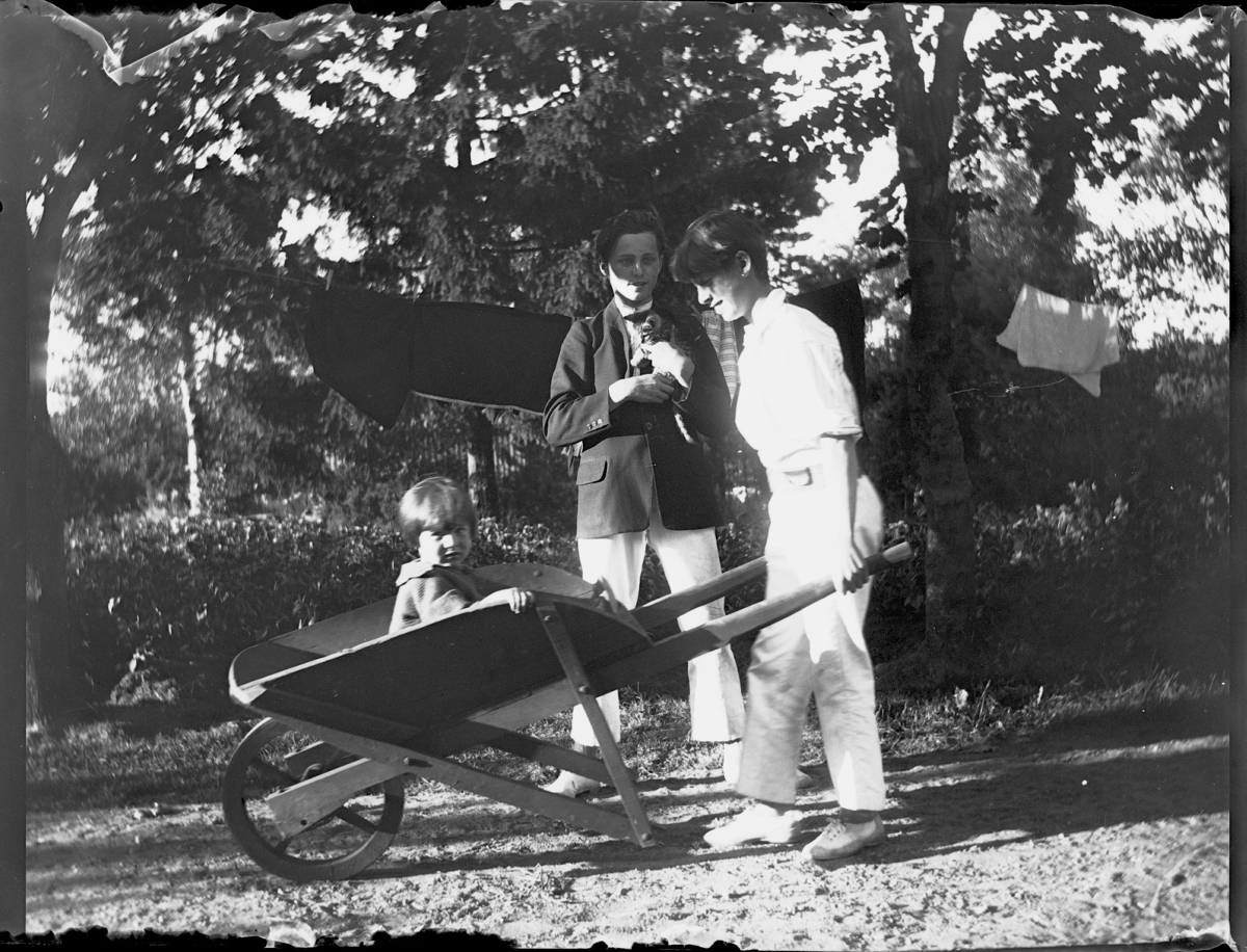 Gulle kör skottkärra, Harry med kattunge.