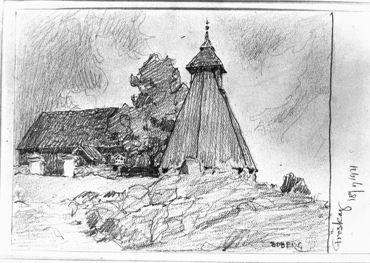 Fröskog kyrka. Teckning av Ferdinand Boberg