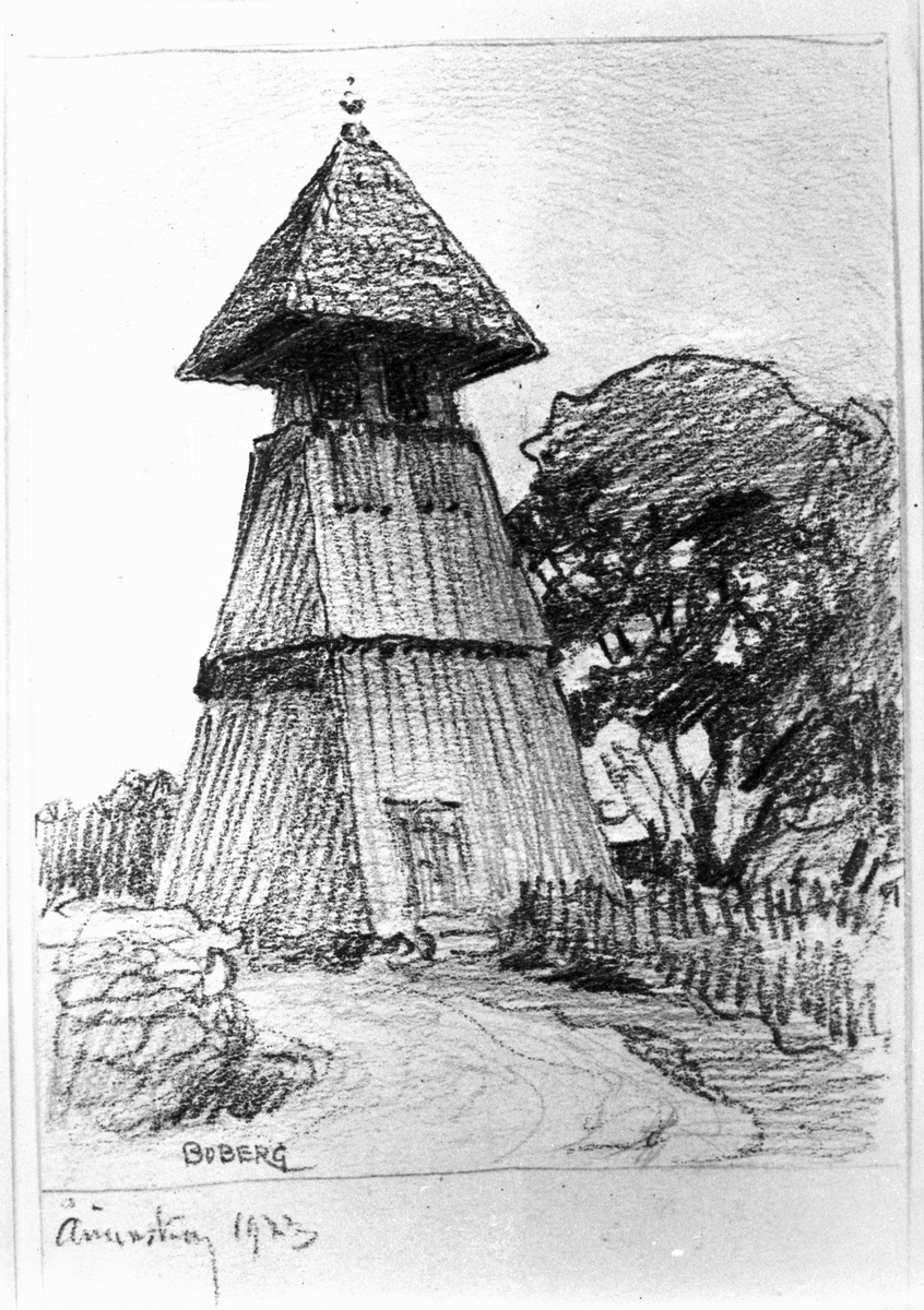 Klockstapeln Ånimskogs Kyrka. Teckning Ferdinand Boberg