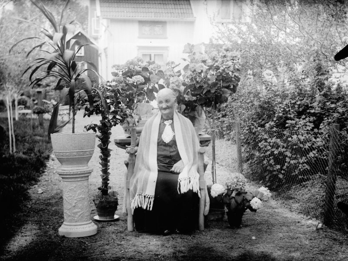 Dam i trädgård. Östadkulle Lena