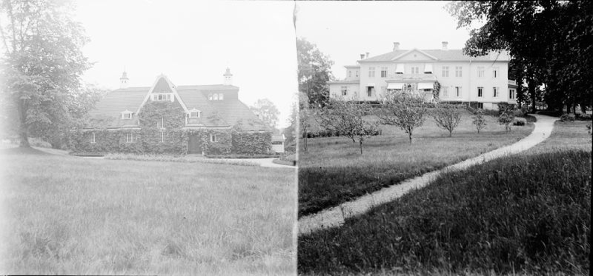 Kolberg och Almekärrs egendomar nära Jonsered till vänster respektive höger..