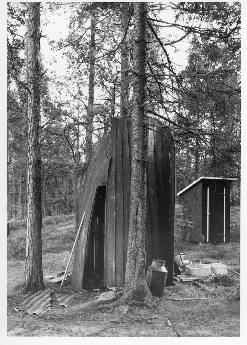 Bårbyggnad. Byggnad av båtdelar. Holm
