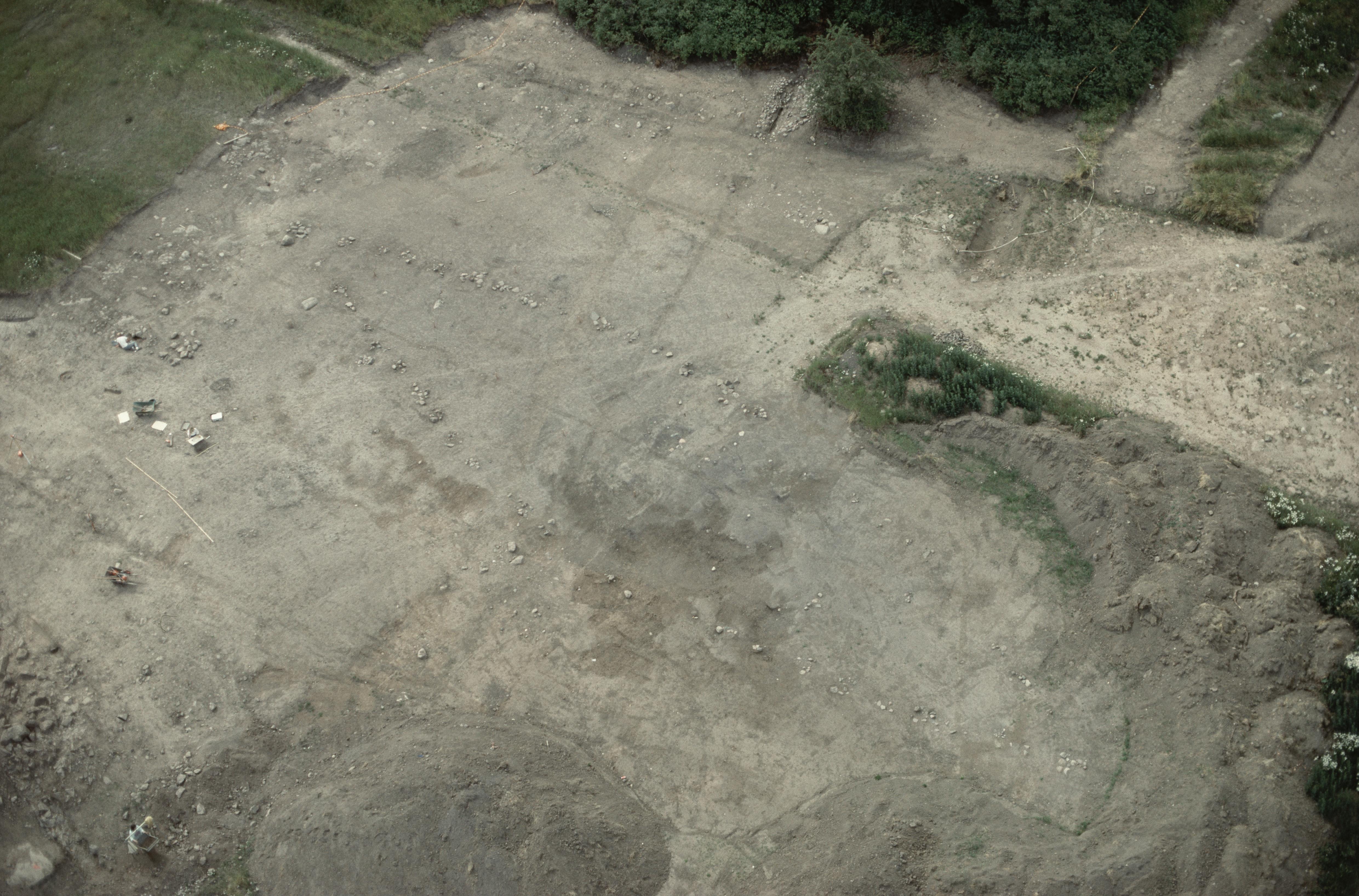Linköpings stad vid Stångebro i stadsdelen Kallerstad. Arkeologisk undersökning av skeppssättning vid Gumpekullastenen RAÄnr Linköping 143:1. Bilden är tagen mot (väderstreck): SV