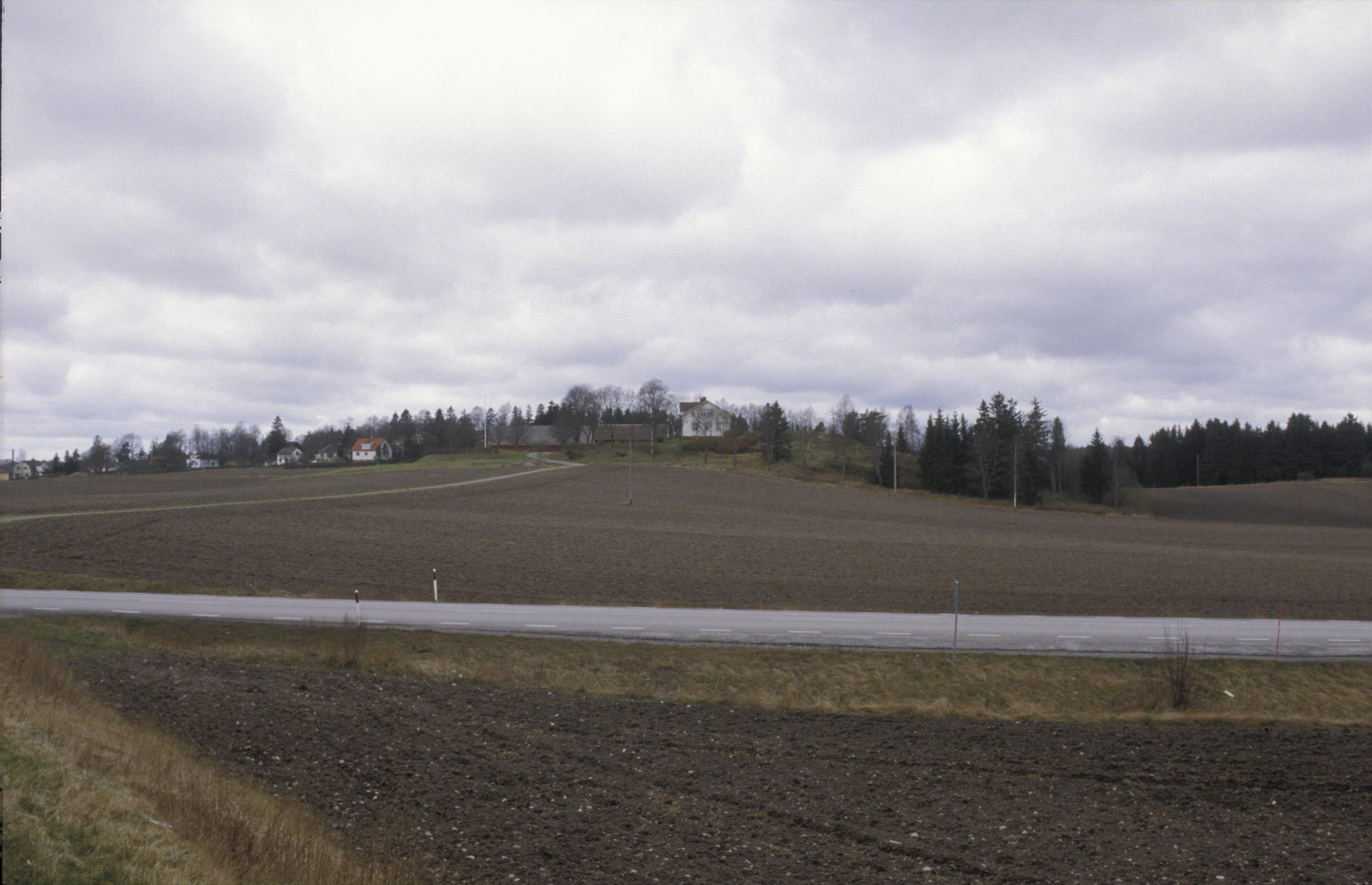 Miljöbild som visar väg, åkrar och miljön vid Brötegårdens hällristningar.