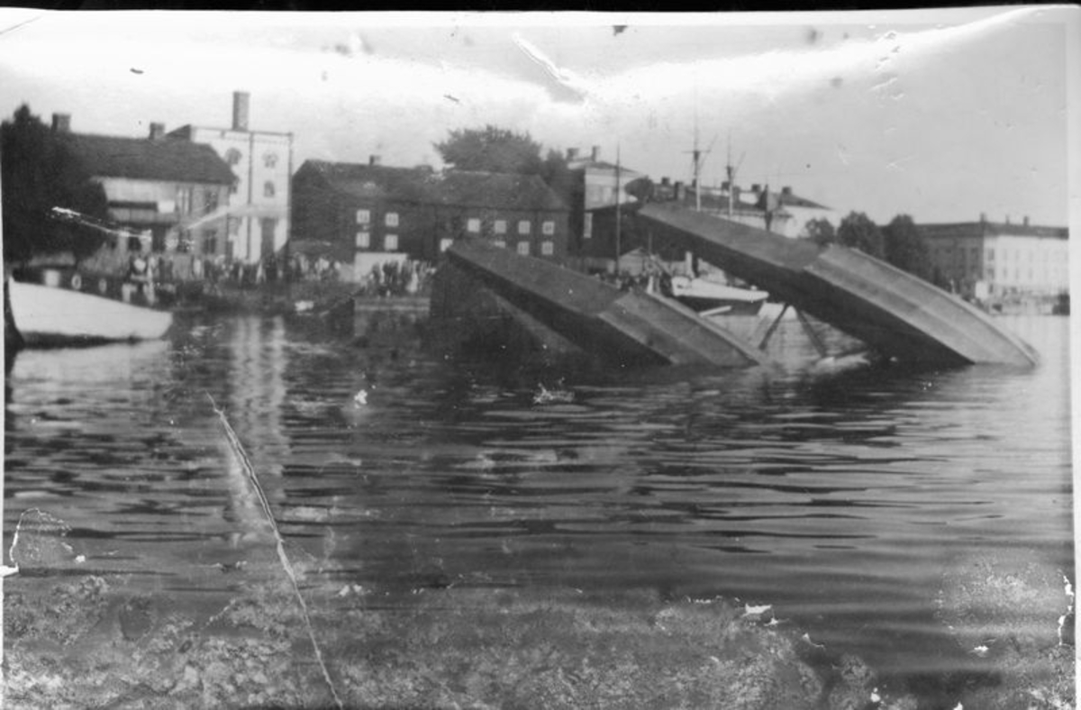 Havererat sjöflygplan i hamnen mot bryggeriet. Vänersborg
