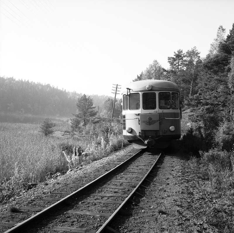 Lelångenbanan. Näst sista resan före nedläggandet, med utgång från Uddevalla. Extratåget passerar Bursjön.