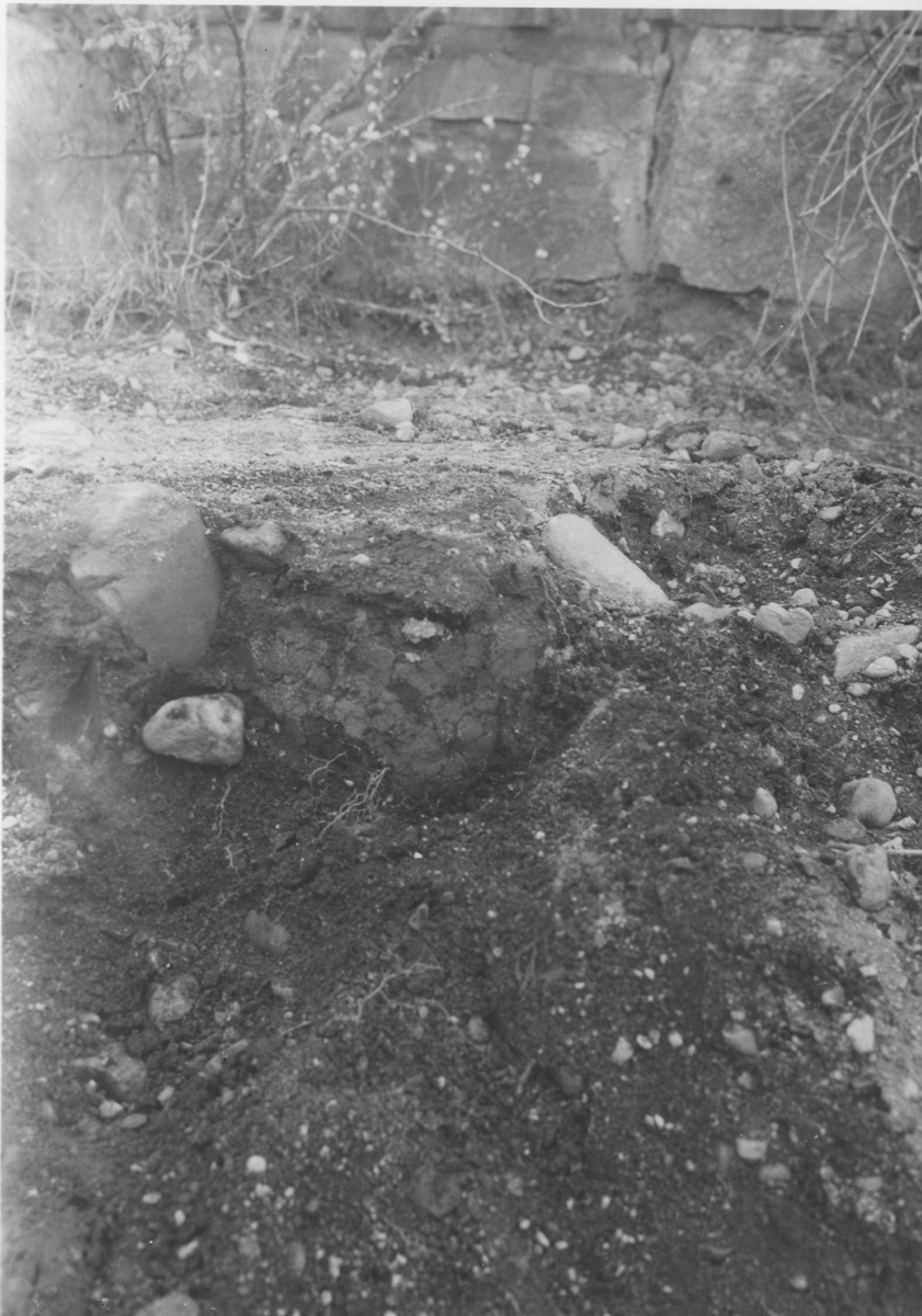 Trollhättan, Gärdhem, Fyndplats E fr. S. Urnan synes mellan stenarna. I bakgrunden stenfoten till Norlins stuga.