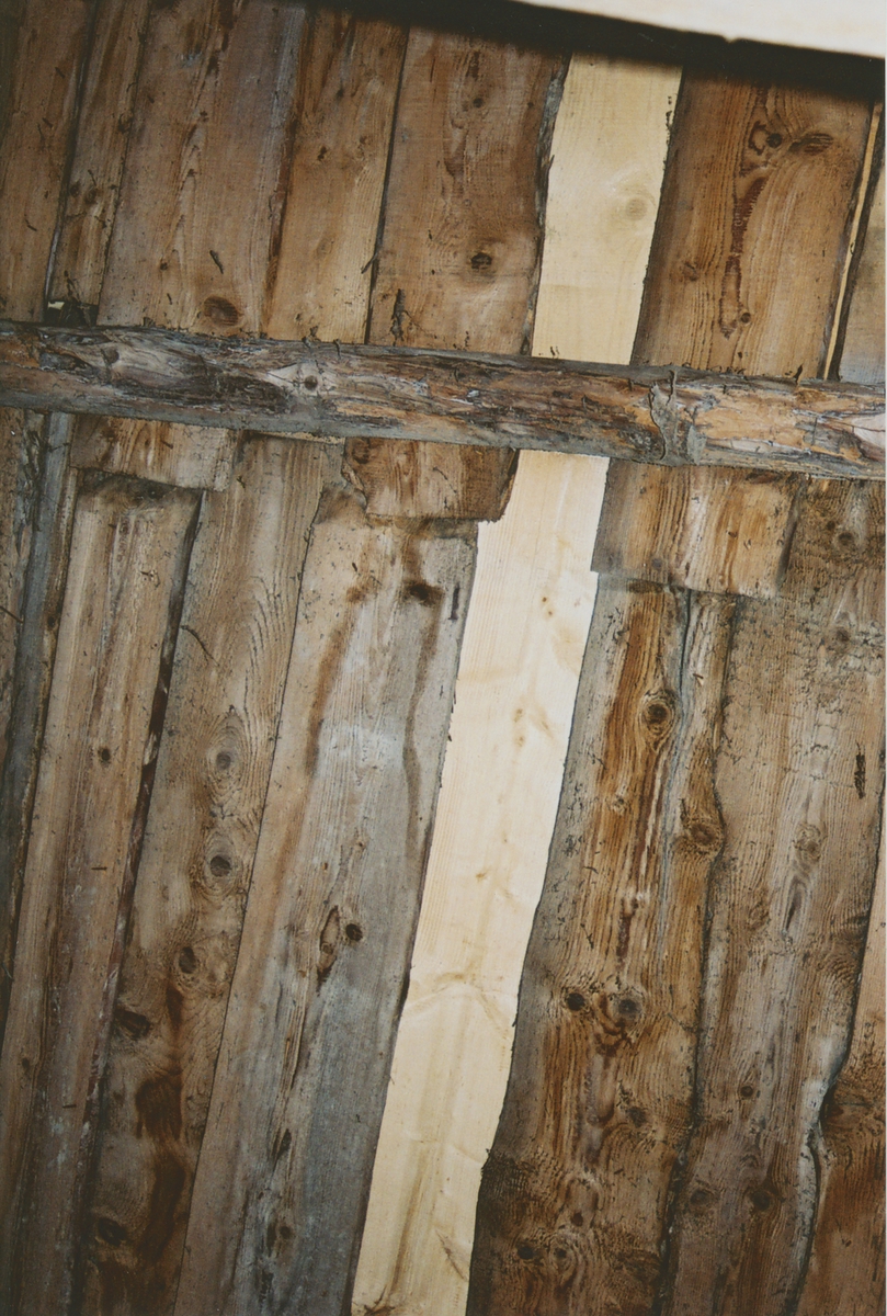 Interiör. Del av tak eller vägg. Restaurering? Blackstorp Fors