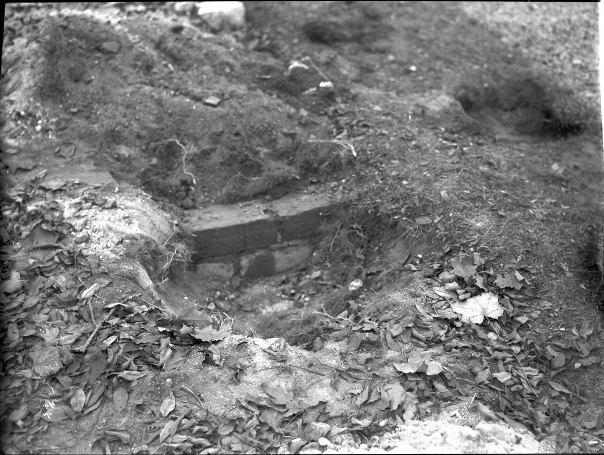 Tegelmur vid Edslegårds kyrkogård. Tvärarmens östra kant.