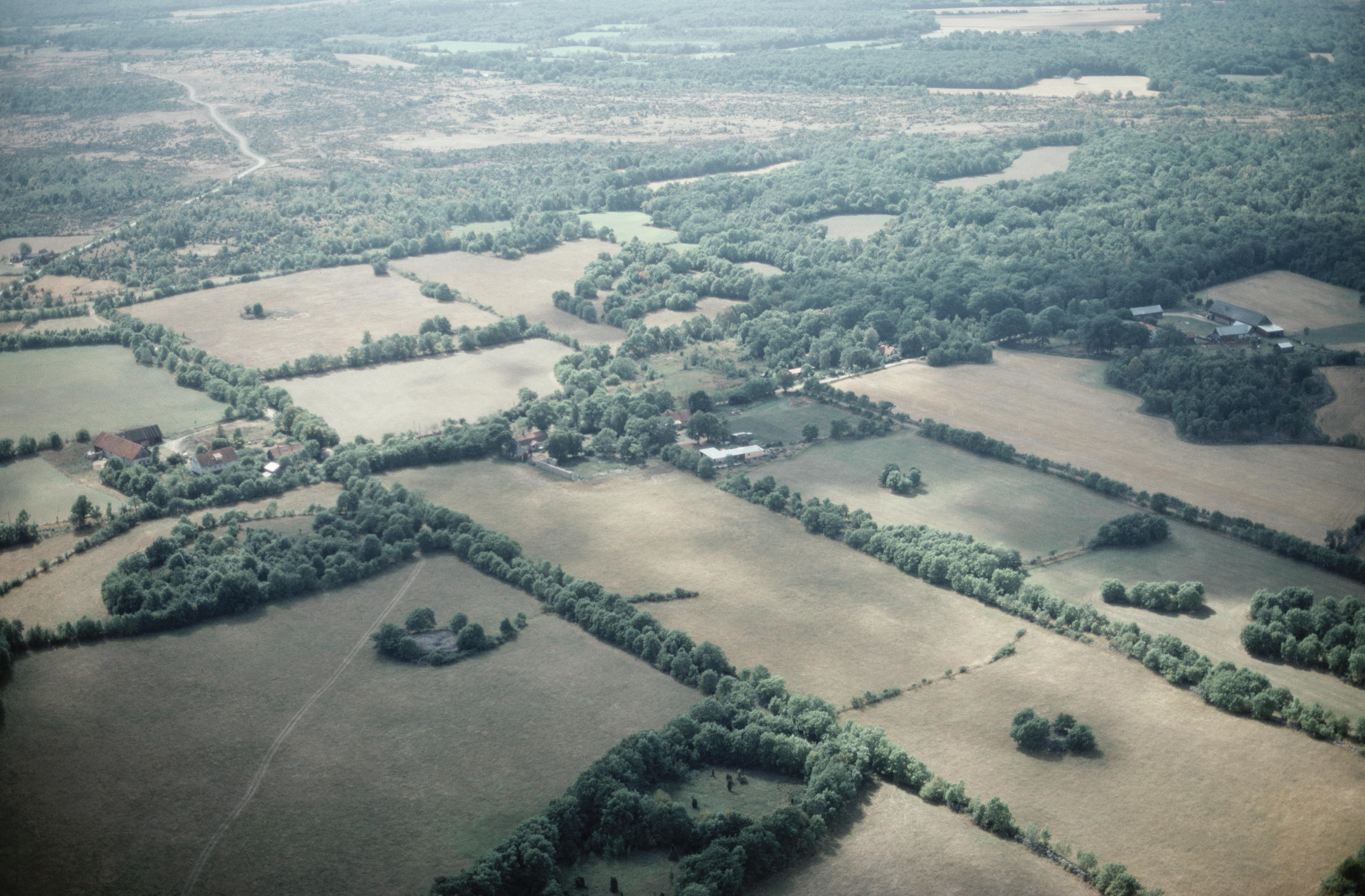 Karums by. I bildens övre del till vänster gravfält Noaks ark RAÄnr Högsrum 80:1, 82:1, 83:1. Bilden är tagen mot (väderstreck): SV