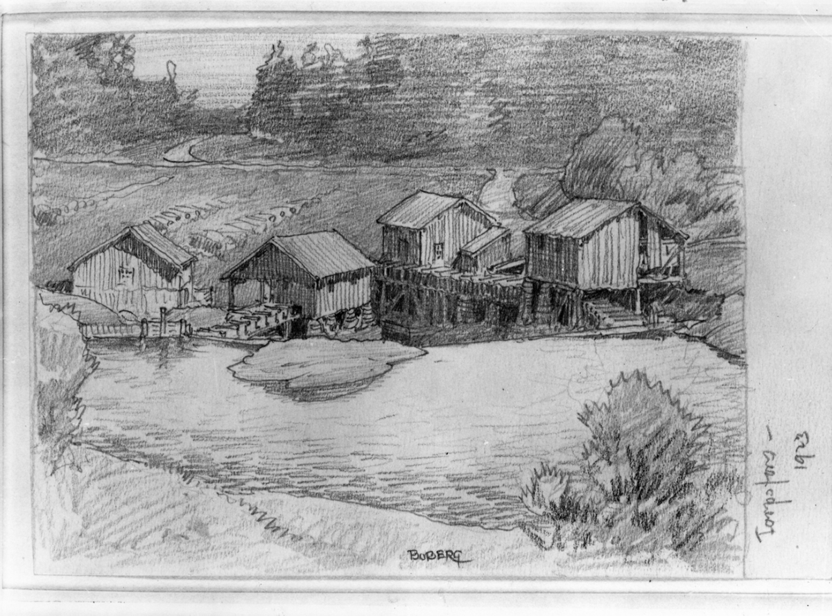 Dals-Ed, Torpsfors. Teckning av Ferdinand Boberg