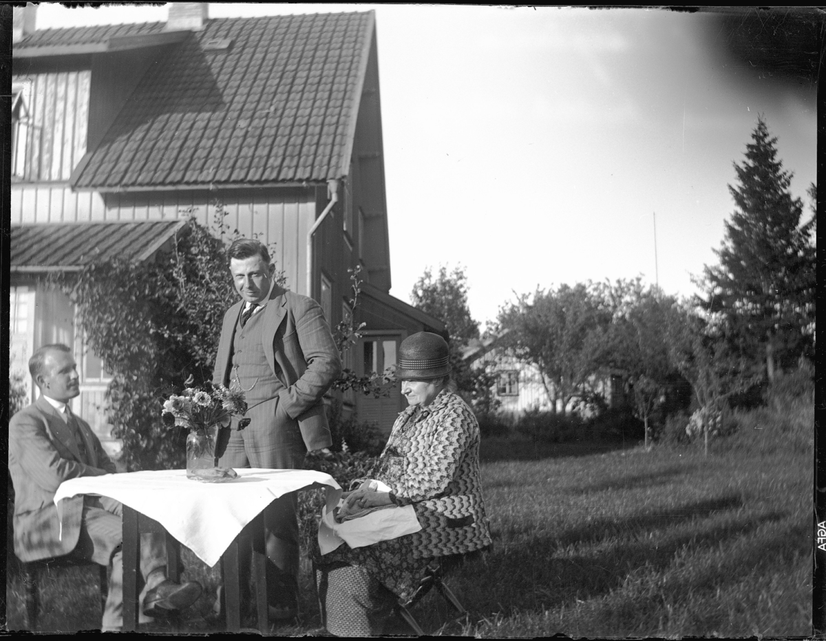 Kaffe i trädgården. Mamma, Anders och jag. Troligen i aug 1931.