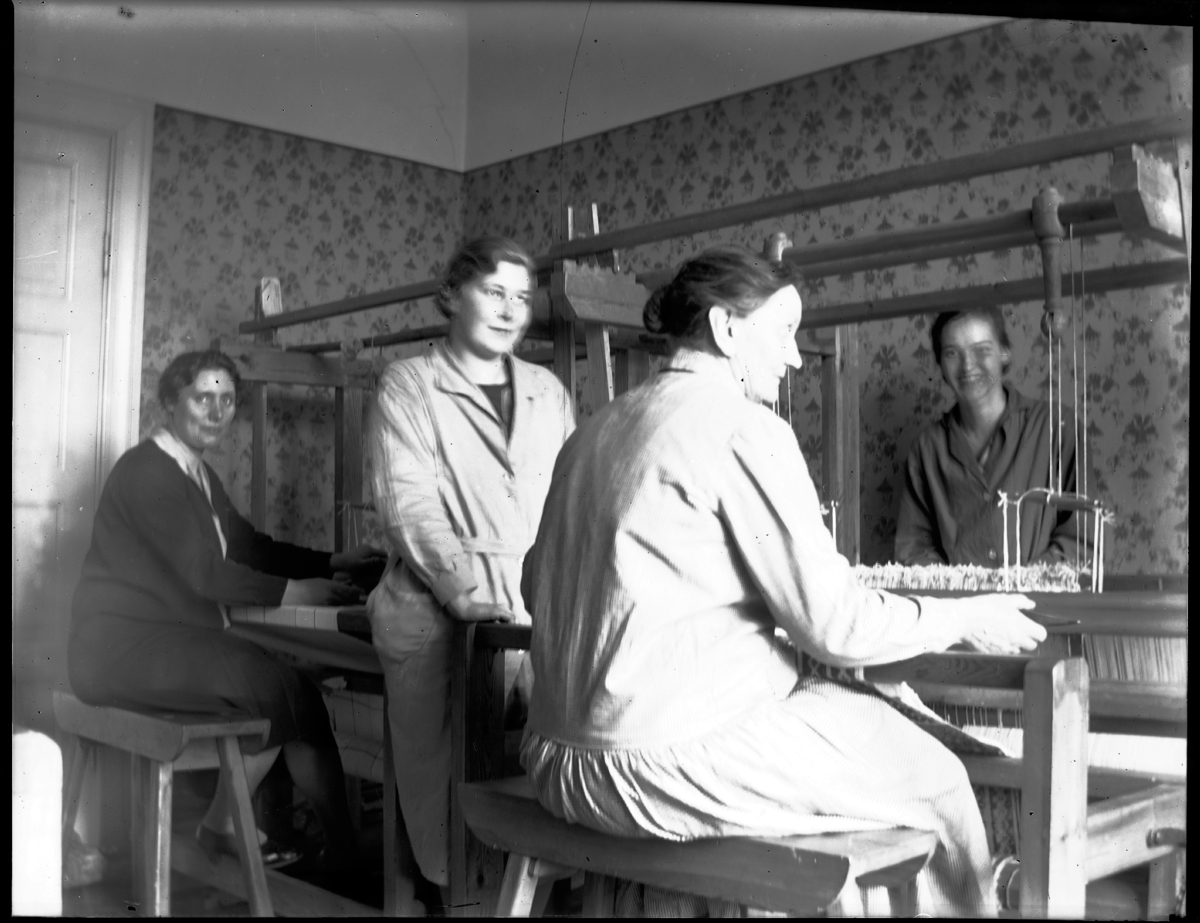 Bild från vävkursen i Åmål med bl.a Märta och Berta.
