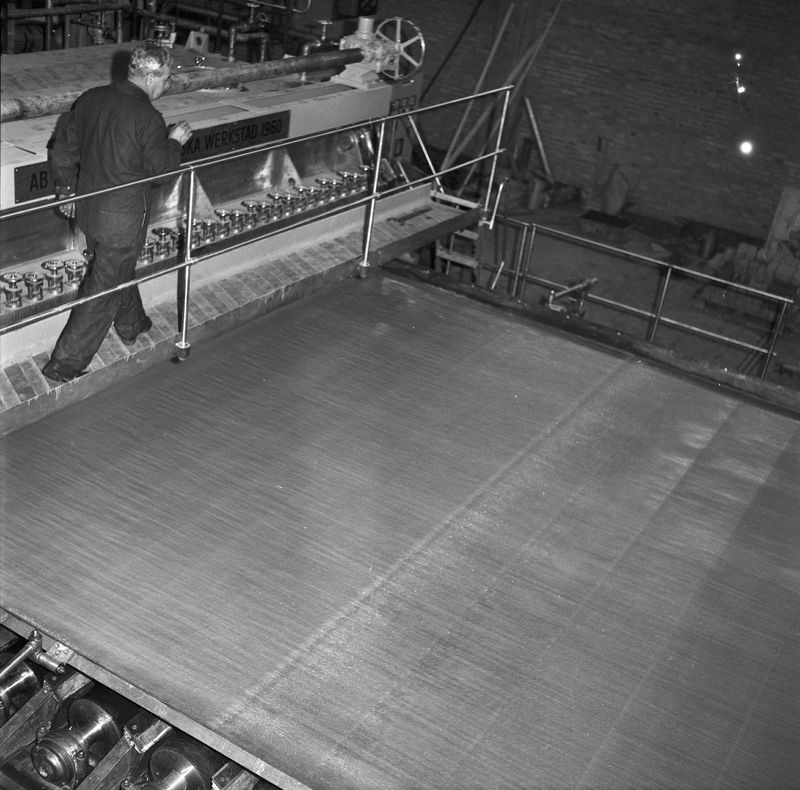 Wargöns AB. Byggnation av PM 5 1959-60. Foto och påförd text av dåvarande ritkontorschefen Ragnar Söderberg.