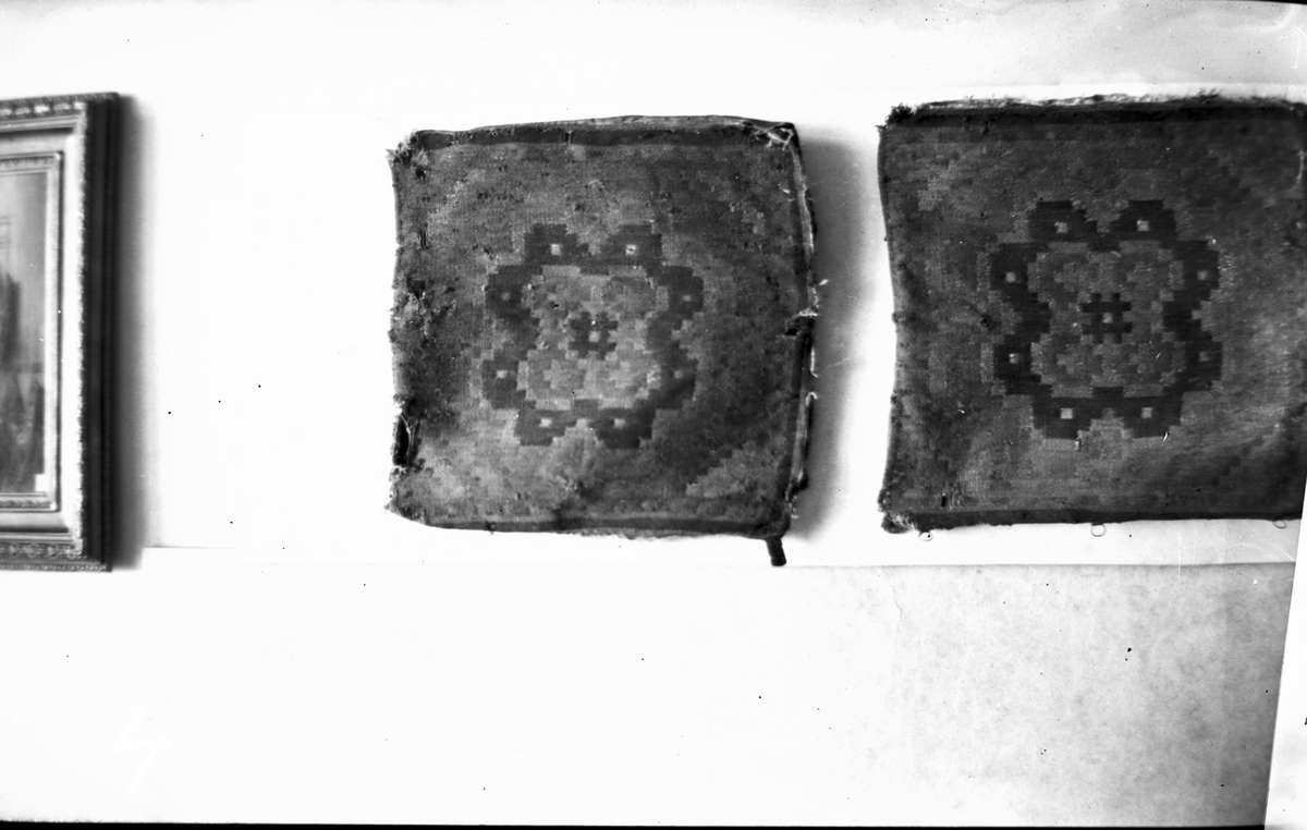 Två bänkadynor vävda i färger. Locktorp, Ale-Skövde.