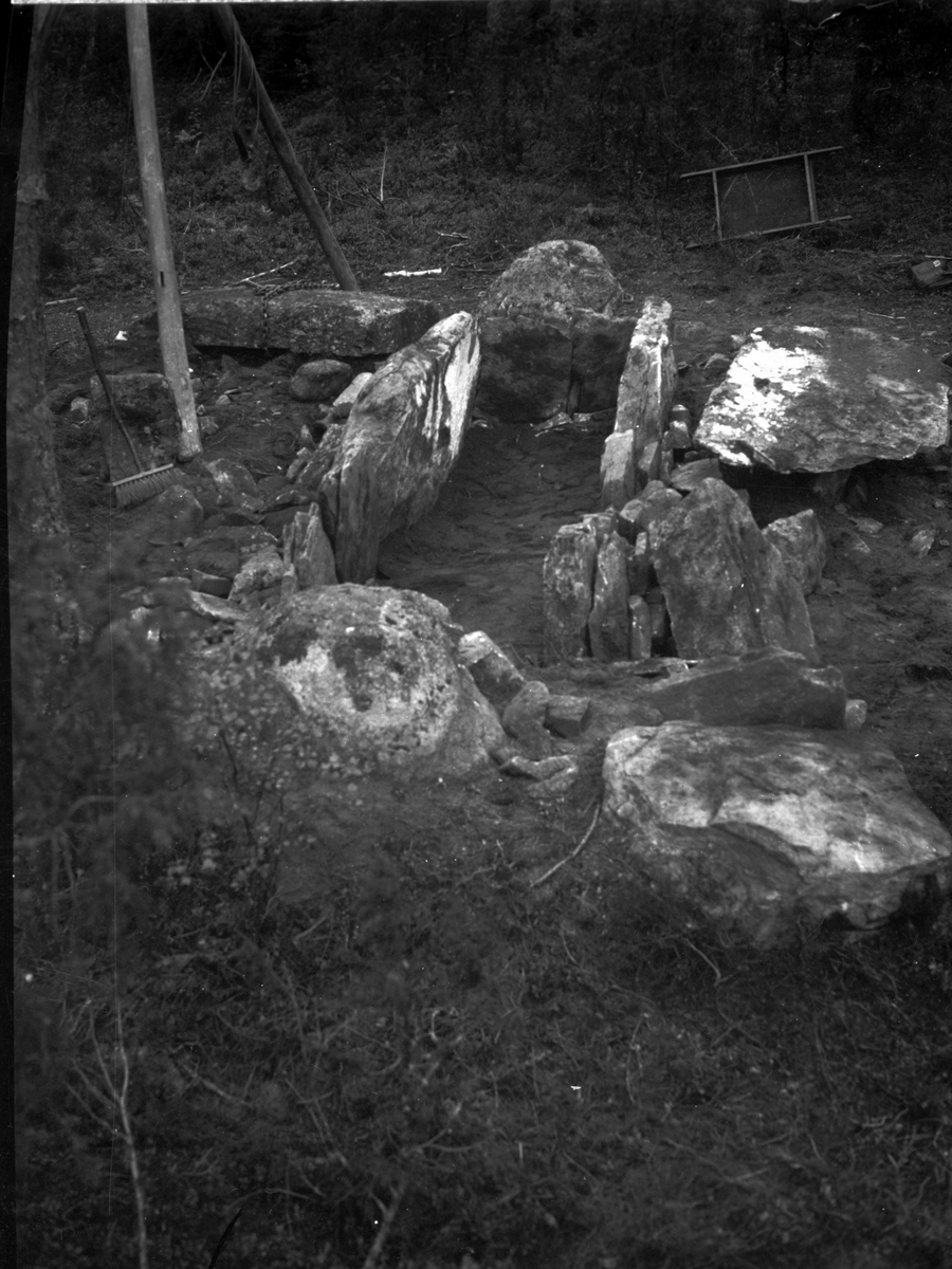 Hällkistan efter restaurering av sidohällarna från söder. Vägne Håbol