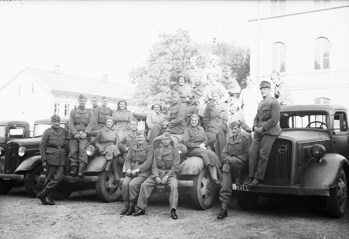 Hemvärnsmän på läroverkets gård. Vänersborg