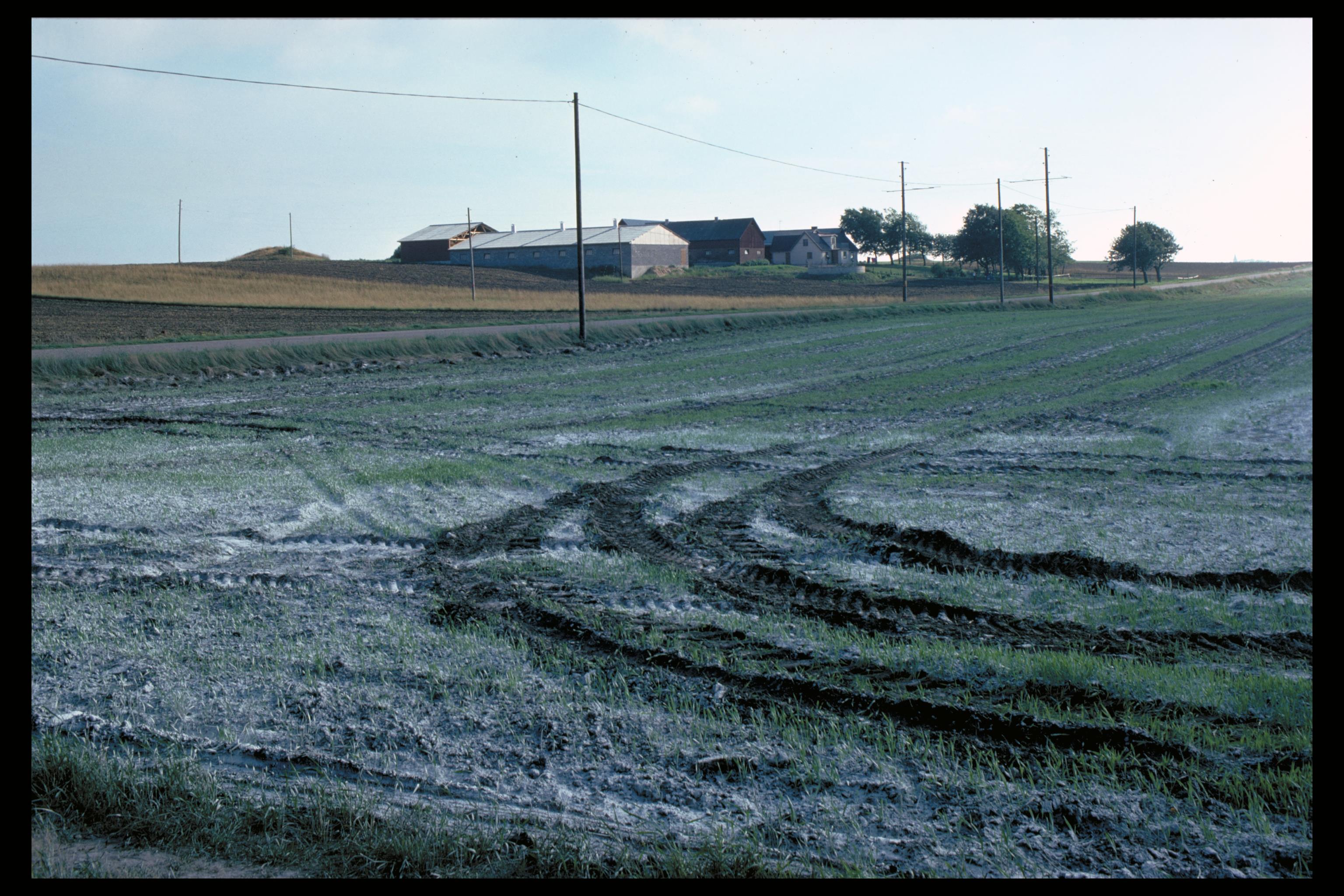 Kalk som spridits på åkrarna. Bilden troligen från mitten av 1970-talet.