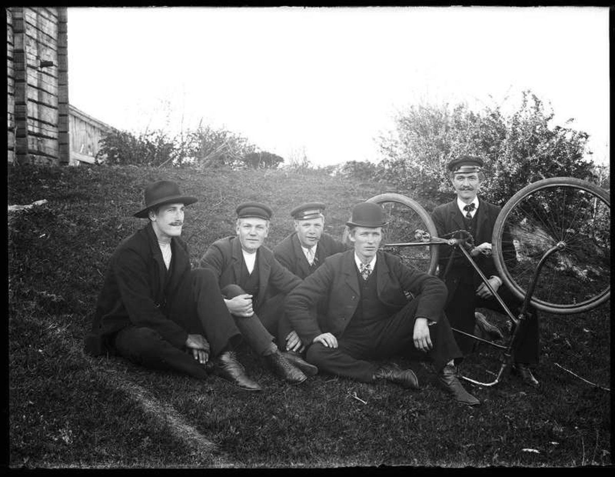 Olof Jonssons text: Ivar, Kalle, Ravels Oskar, Molis Karl med upp och nedvänd velociped