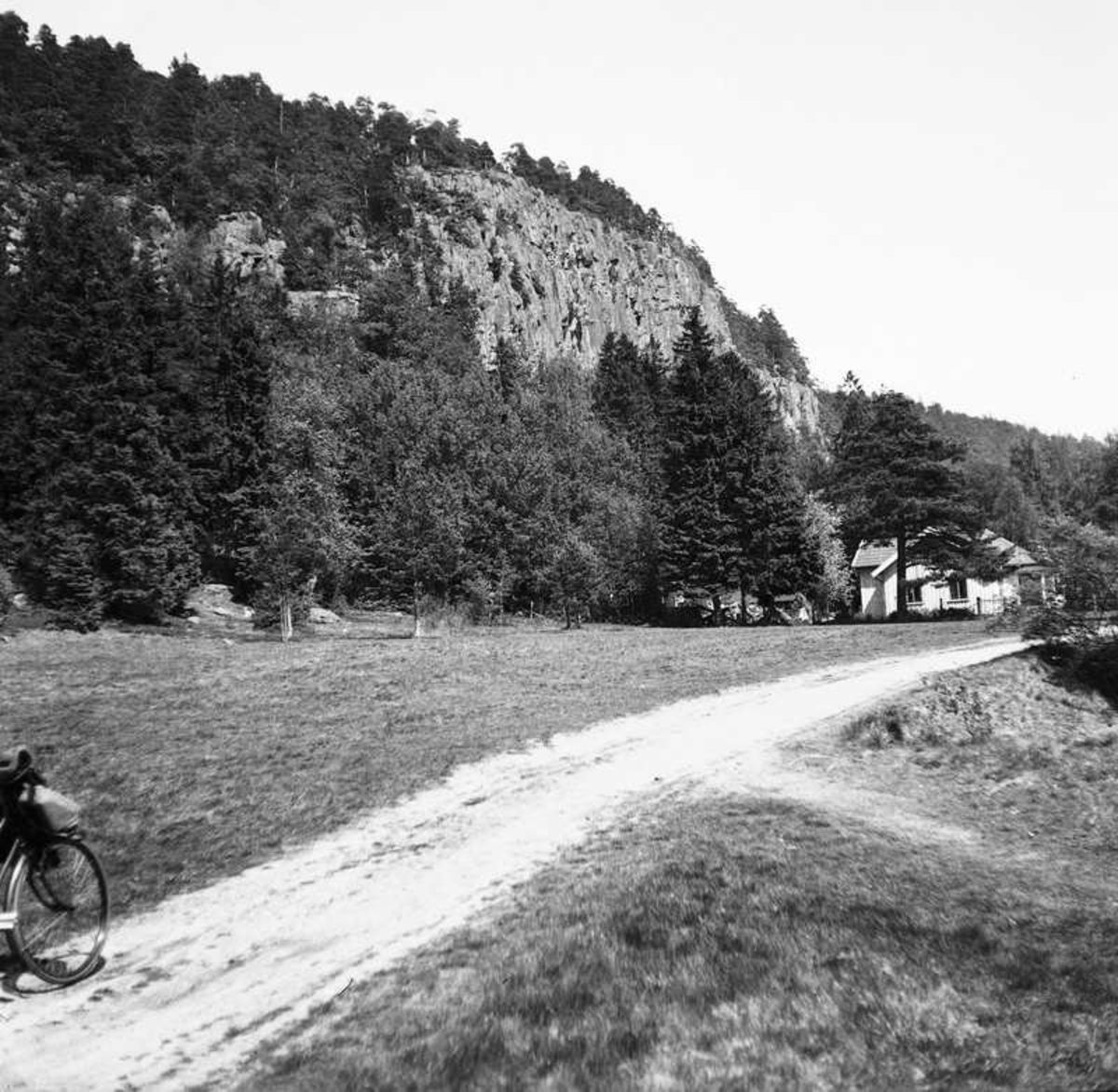 Halleberg. Hednaplatsen (Tingsplatsen) med Häckle ättestupa i bakgrunden. 29 Maj 1946.