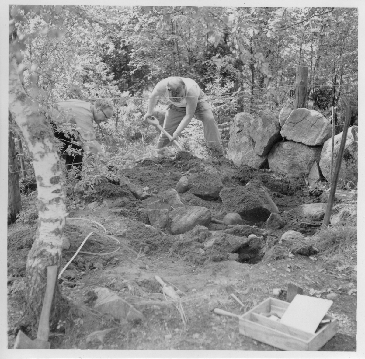 Gestad, Landsantikvarie Hallbäck i färd med utgrävning. K. Andreasson hjälper till.