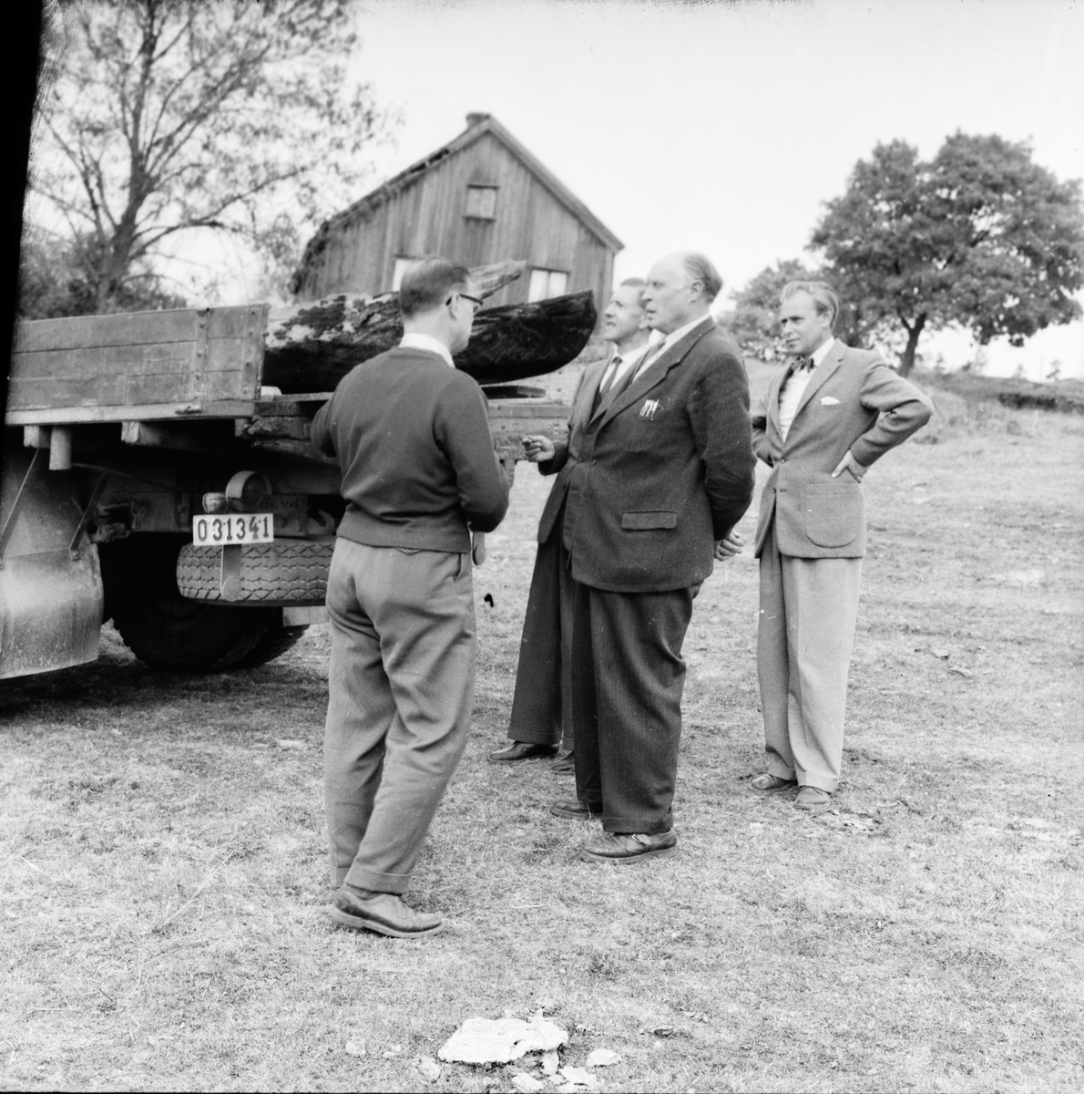 Titel:Håletjärn, Valbo-Ryr. Ekbåten lyfts upp på lastbilen.