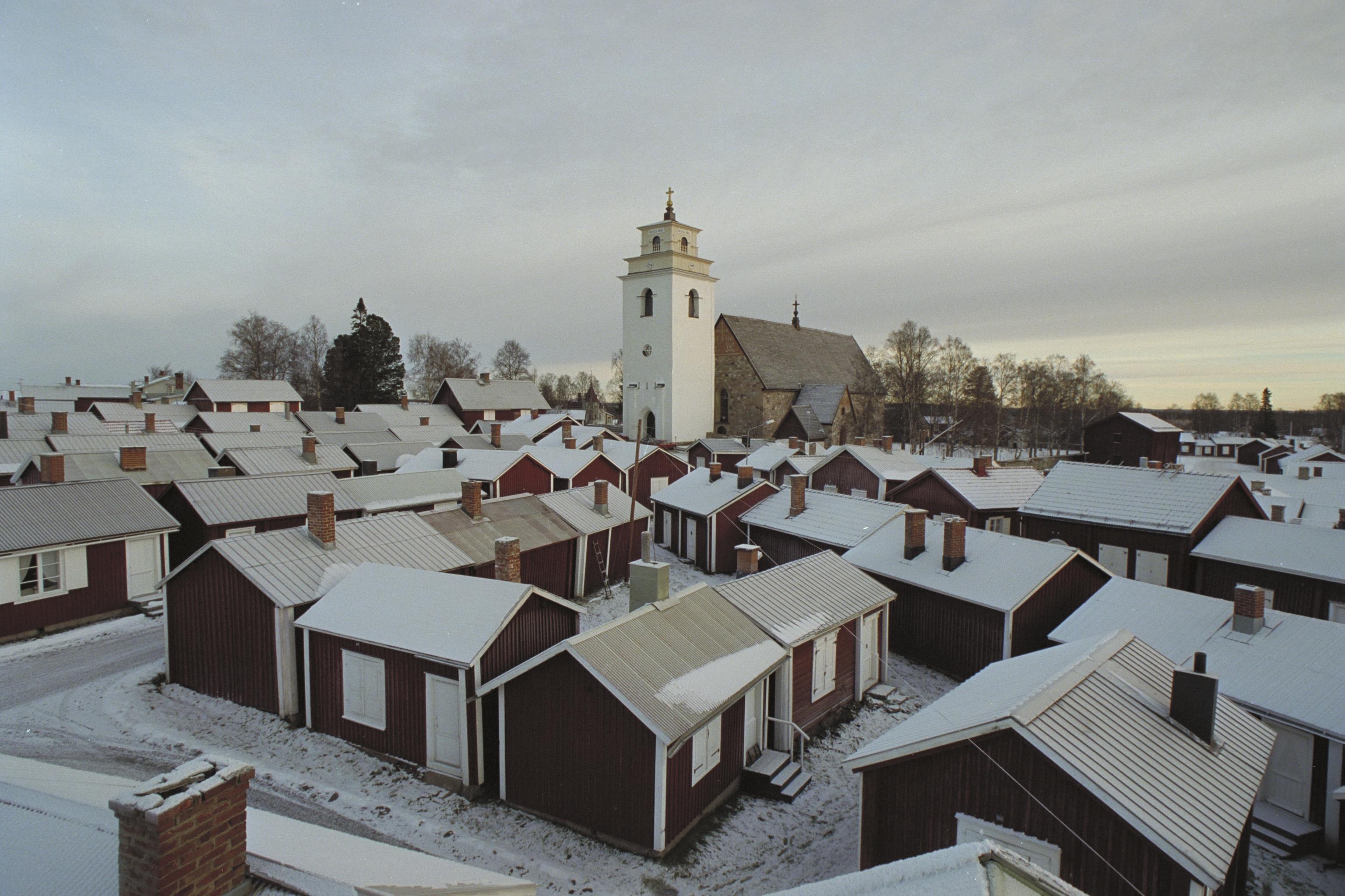 Nederluleå kyrka i bildens mitt.