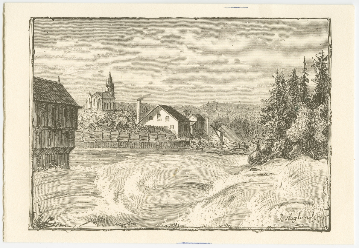 Vykort med Trollhättemotiv.