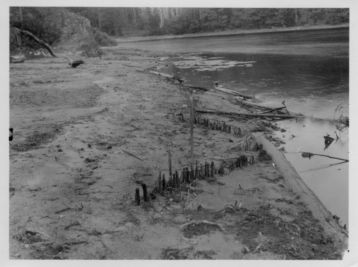 Rester av fiskegård eller katsa, som framkommit vid sänkning av Anderstjärn. Nössemark