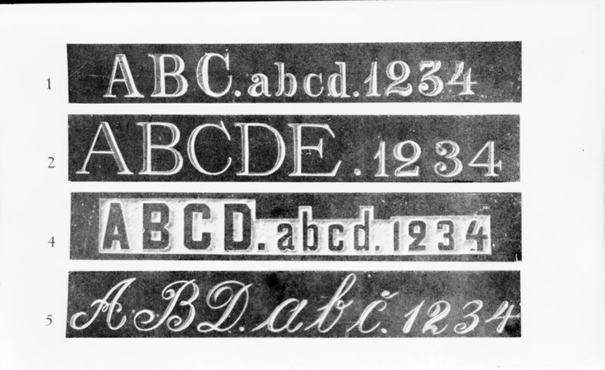 Firma Hallman och Blomgren stenhuggeri. Textprover till inskription i sten.