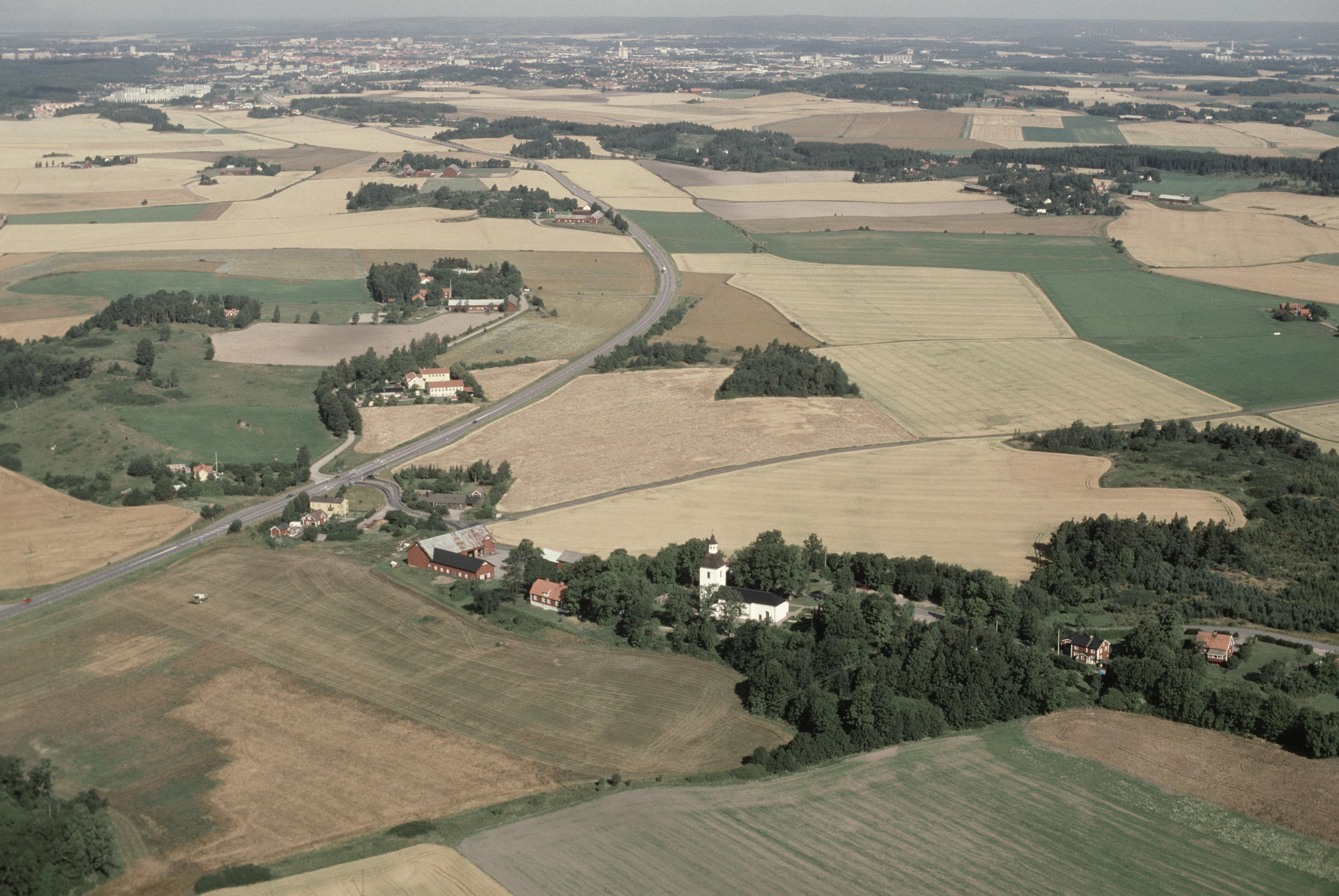Tingstads kyrka och kyrkby. Bilden är tagen mot (väderstreck): NV