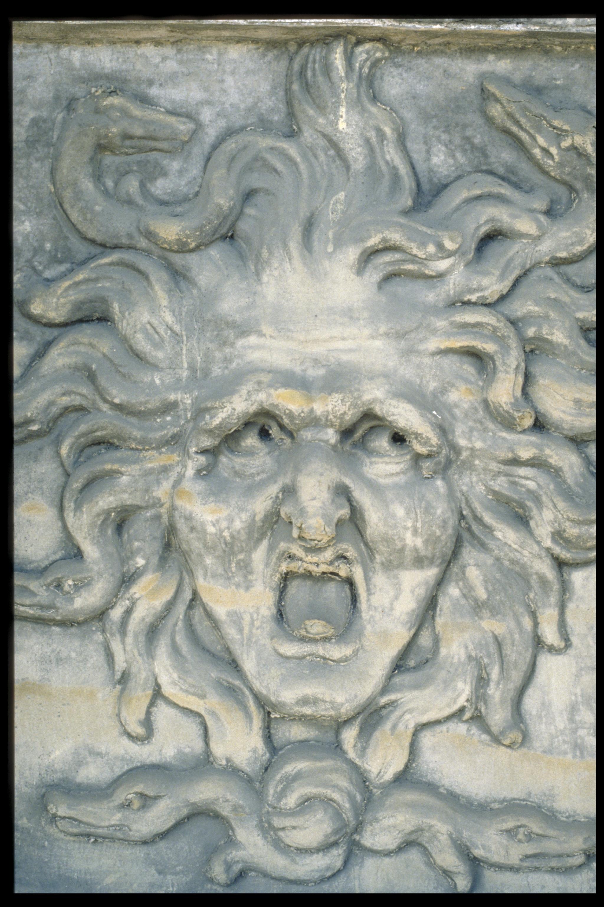 Karolinska gravkoret. Metop mot öster, Medusahuvud.