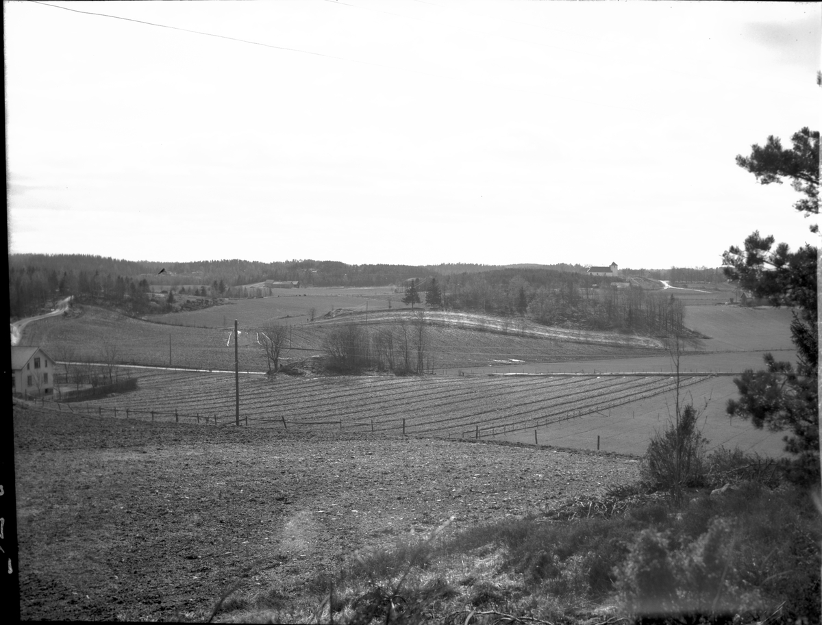 Utsikt mot söder och Ödeborgs kyrka från hög 28 Håvesten Ödeborg