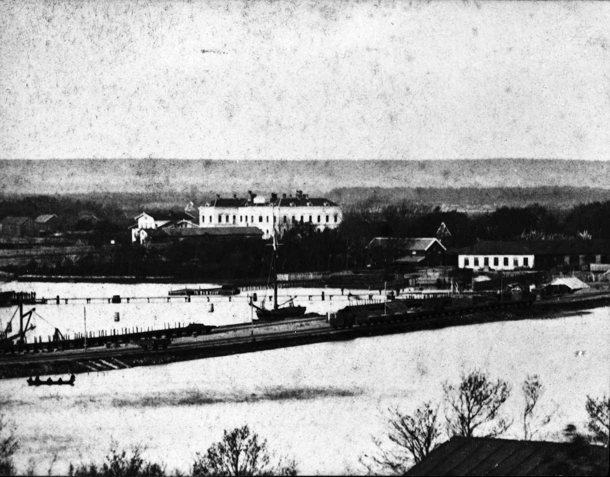 Järnvägsbanken före utfyllnad av Vassbotten. Vänersborg