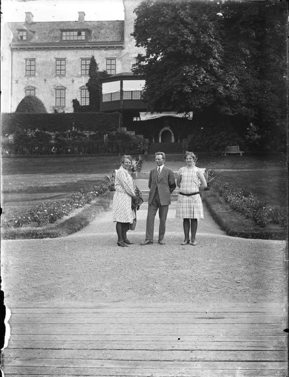 Porträtt av tre personer vid Kobergs slott.