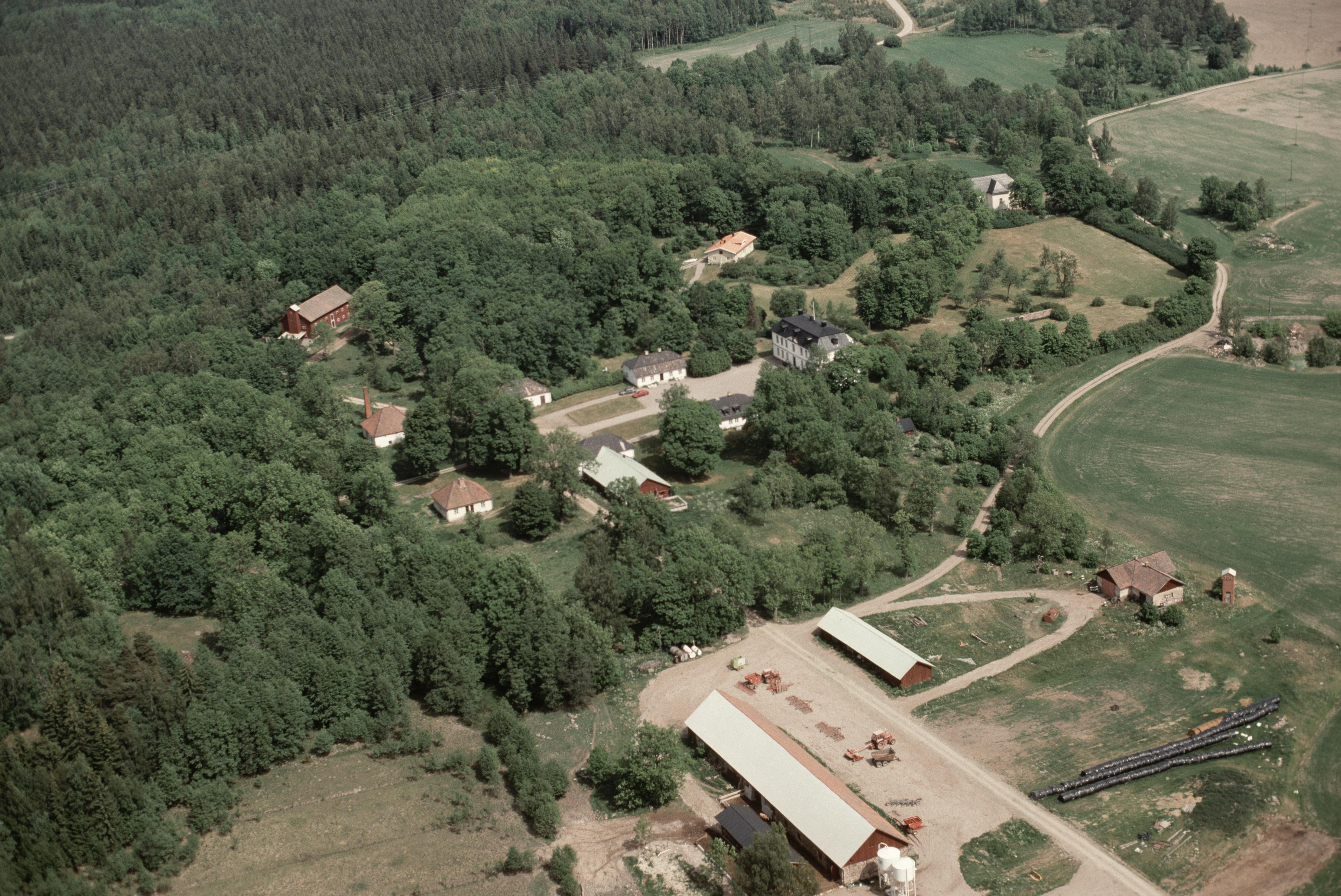 Sveneby herrgård. Uppe till höger Sveneby kyrka. Bilden är tagen mot (väderstreck): NO